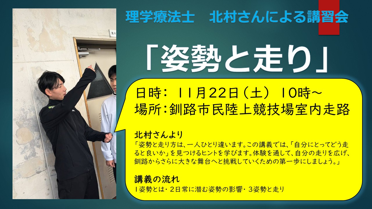 案内PDF 2025年4月19日(土) 競技普及講習会のおしらせ 2025年5月31日(土) 小学生陸上競技講習会のお知らせ 2025年8月30日(土) 小森コーポレーション陸上教室について 申込ファイル(EXCEL) 2025年11月22日(土) 理学療法士北村さんによる講習会